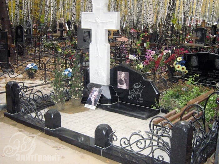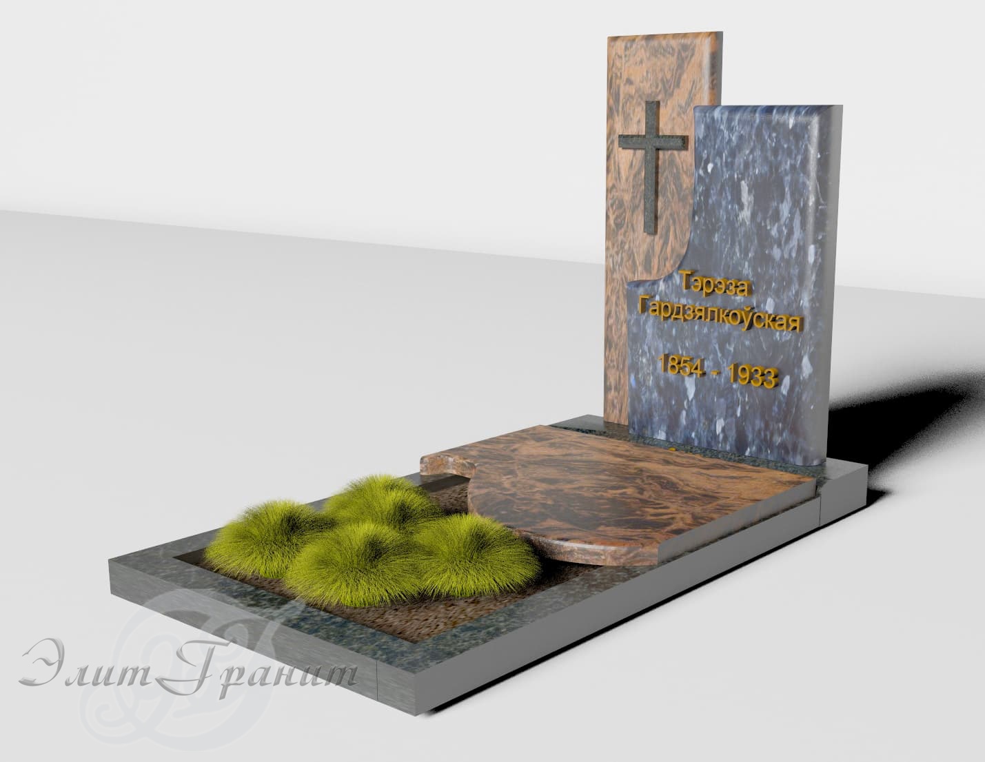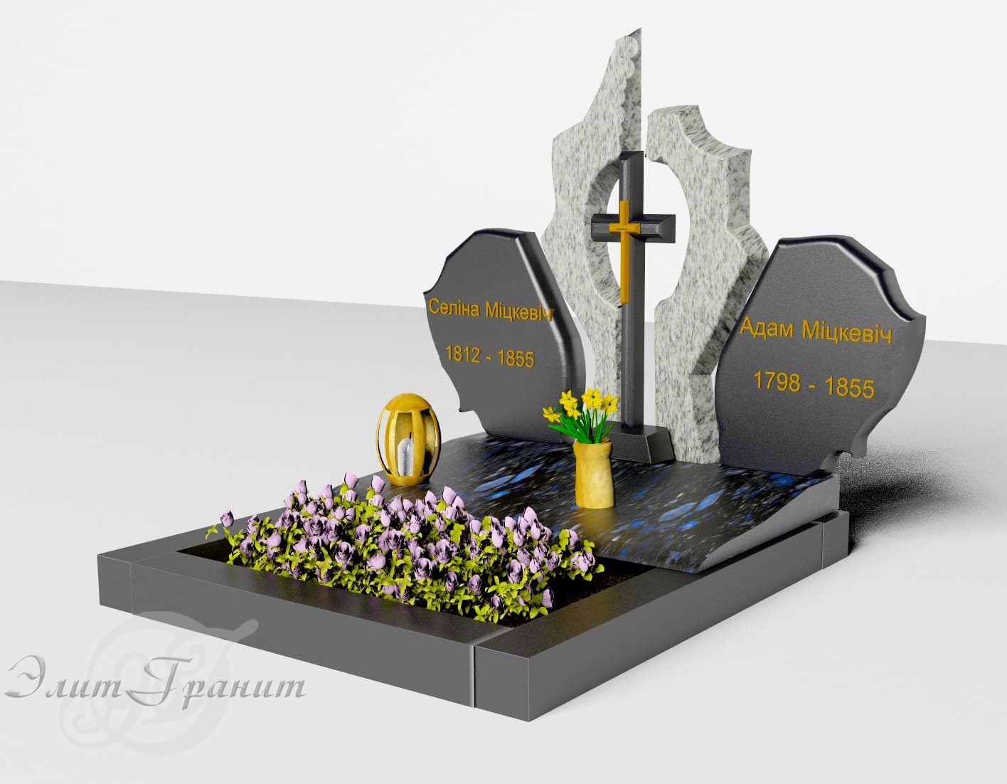 Для европейского стиля чаще используют две породы камня, даже если надгробие на одного человека.
