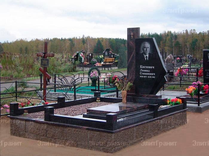 Серые граниты — покостовский и Kuru Grey — являются воплощением спокойной скорби, устремленной в вечность. Они достаточно нейтральны, и для их оформления подходят все вышеперечисленные варианты.