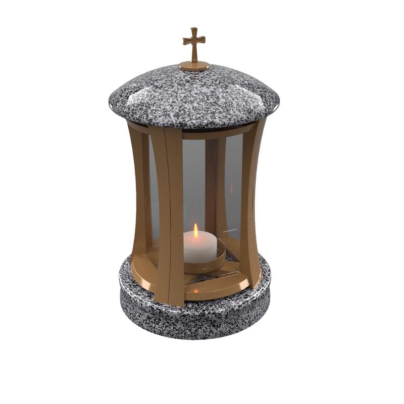 Стильная и надёжная лампада для памятника, выполненная из натурального гранита с декоративной вставкой цвета бронза. Основа и крышка из гранита могут быть изготовлены из камня более чем с 20 различных месторождений — от классического чёрного до эксклюзивных цветных гранитов.