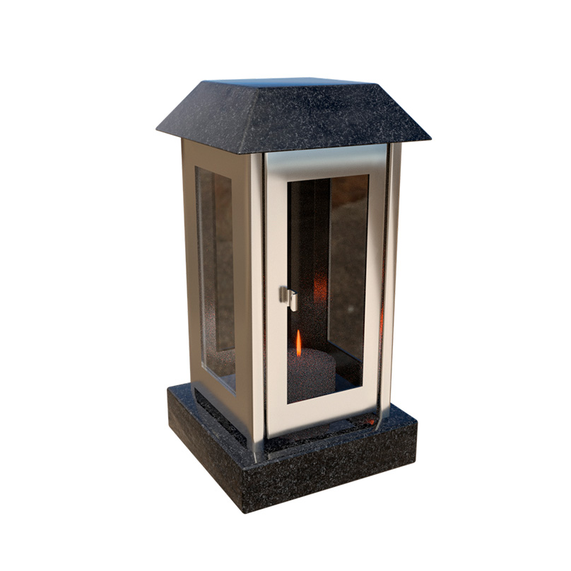 Стильная и надёжная лампада для памятника, выполненная из натурального гранита с декоративной вставкой цвета серебро. Основа и крышка из гранита могут быть изготовлены из камня более чем с 20 различных месторождений — от классического чёрного до эксклюзивных цветных гранитов.