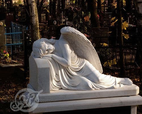 Белый мрамор изначально использовался как основной материал для статуй: пластичный камень идеально легок в обработке, что позволяет придать статуе наибольшую эстетическую ценность. Сегодня, как и ранее, статуи из белого мрамора являются исключительно статусным решением, которое подчеркивает и выделяет могилу близкого.