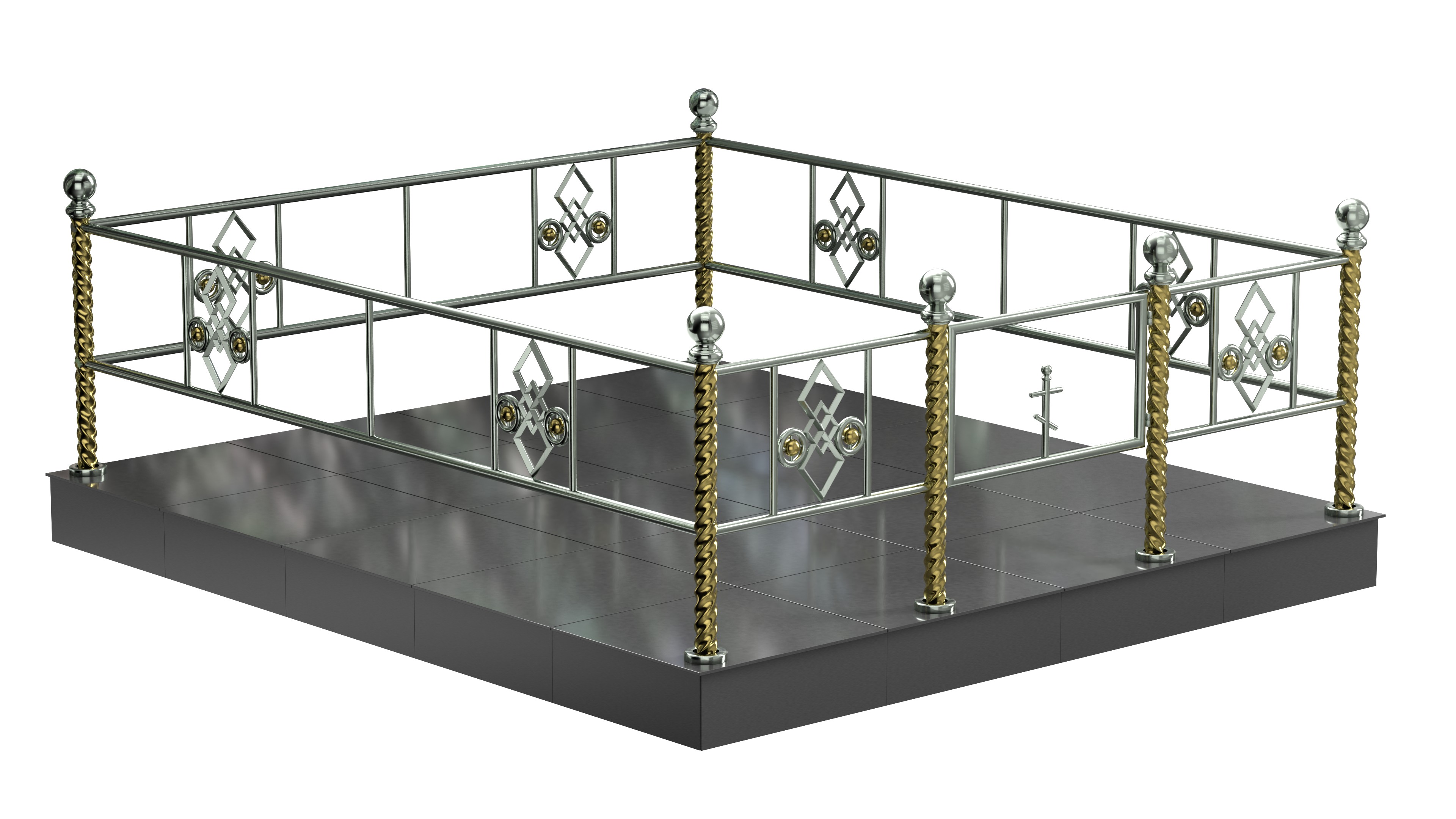 Ограда на могилу, изготовленная из качественной нержавеющей стали и гранита.