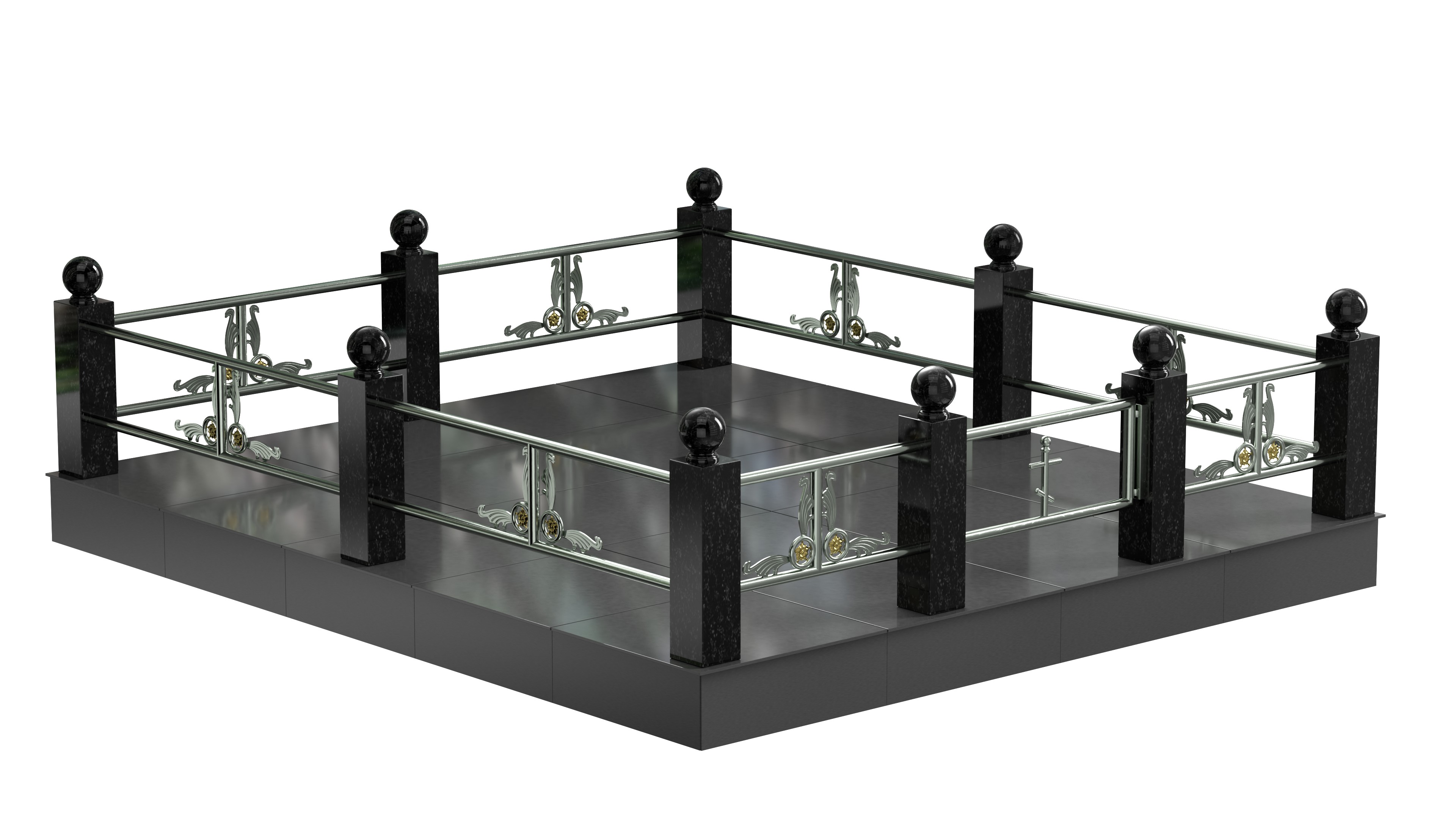 Ограда на могилу, изготовленная из качественной нержавеющей стали и гранита.