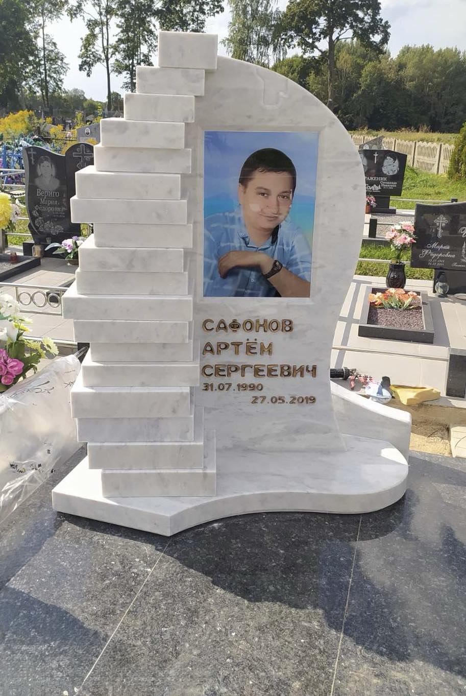 Одна из наших авторских работ — стильный и символичный памятник, выполненный из натурального белого мрамора Коелга. Этот российский камень отличается благородной светлой текстурой с естественными серыми прожилками и идеально подходит для создания выразительных и чистых мемориальных форм.